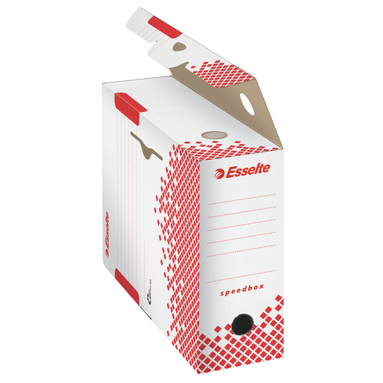 Pudło mieści do 2000 arkuszy papieru o gramaturze 80 gsm, co pozwala na przechowywanie jednego segregatora A4/75mm oraz dwóch segregatorów A4/50mm. Dzięki 5 otworom ułatwiającym wyciąganie i układanie, korzystanie z pudła jest szybkie i wygodne. Ponadto, pudło jest łatwe do złożenia, co oszczędza czas i sprawia, że jego przygotowanie do użytku jest niezwykle proste.