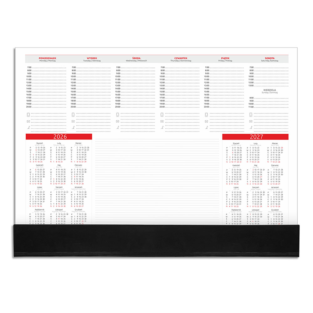 - na każdej kartce skrócone kalendarium na rok 2026 i 2027