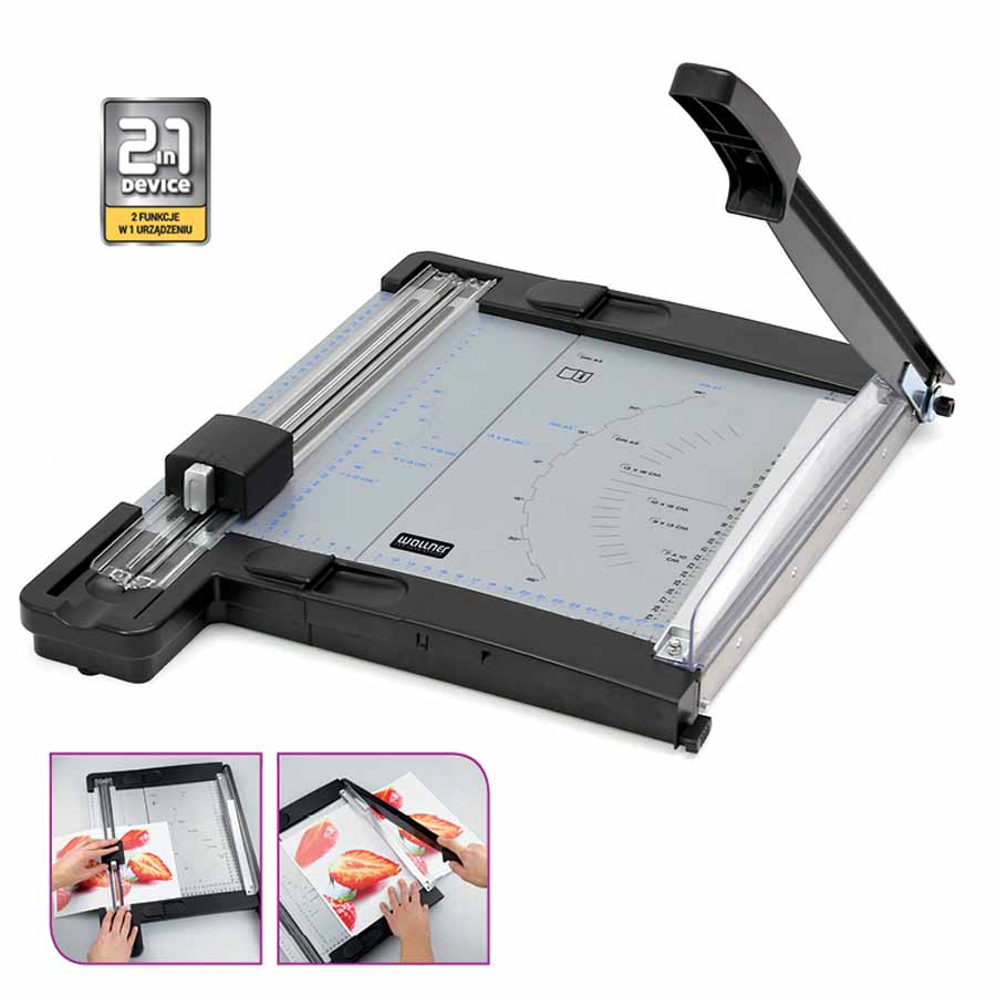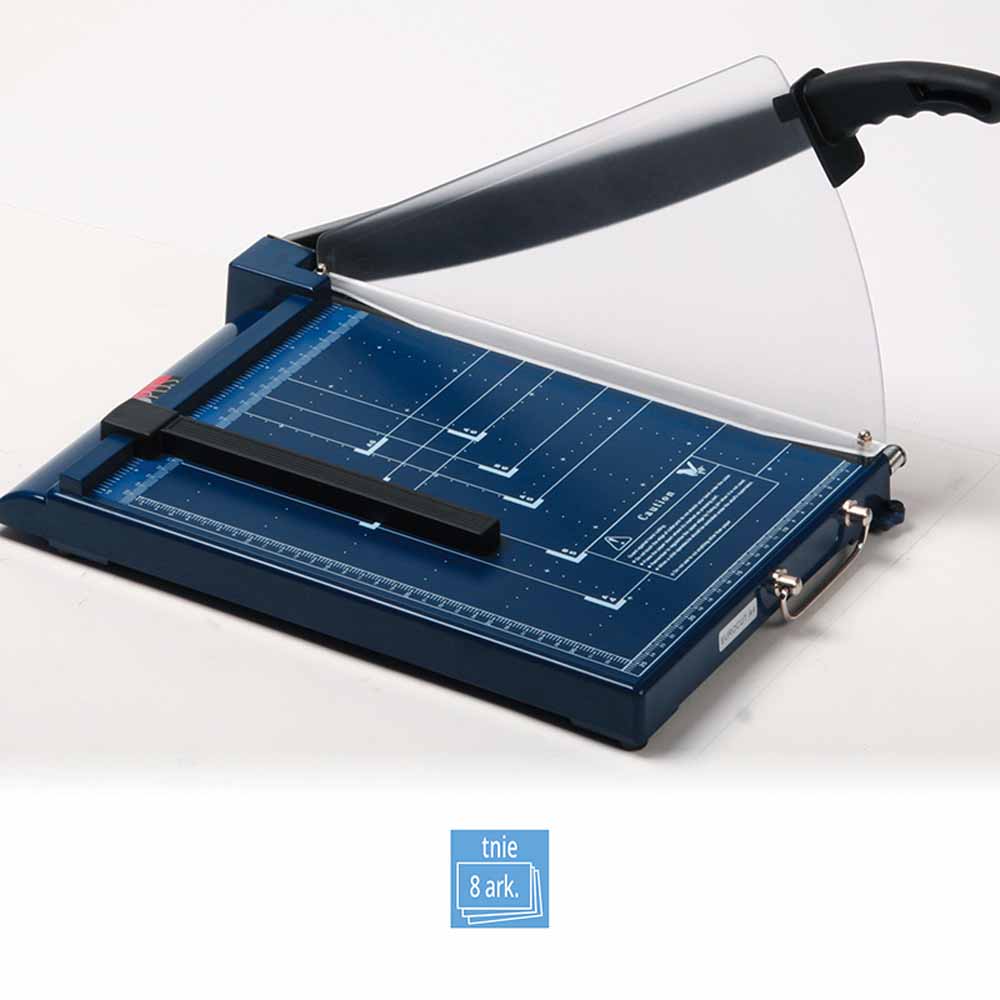 - przesuwny ogranicznik formatu ułatwia przygotowanie dokumentu do cięcia