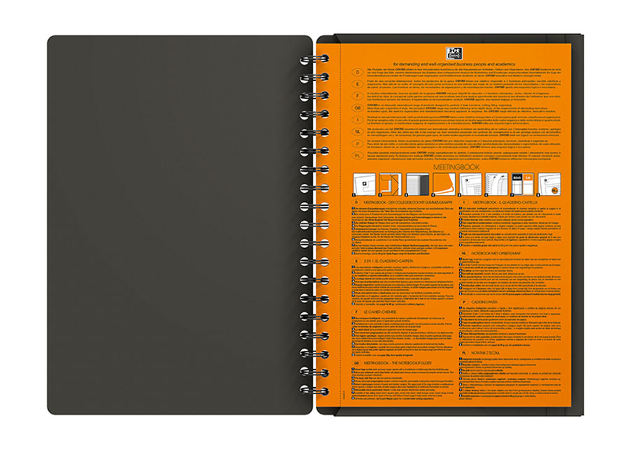 - długie skrzydło teczki może być również użyte jak zakładka do zaznaczenia ważnej lub ostatnio zapisanej strony