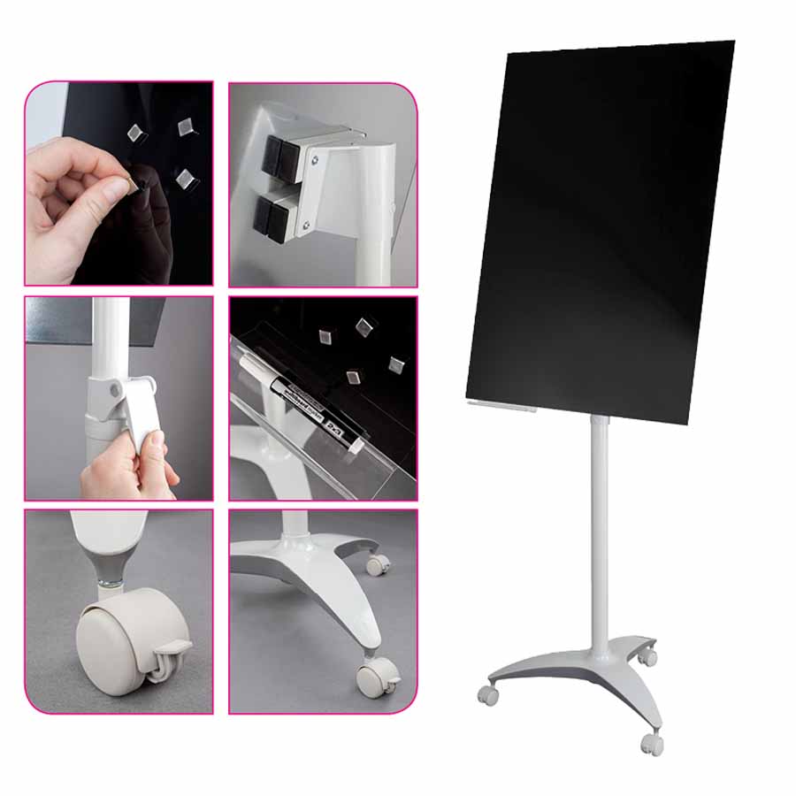 - elegancka plastikowa rama i półka na markery o długości 68 cm w kolorze popielatym