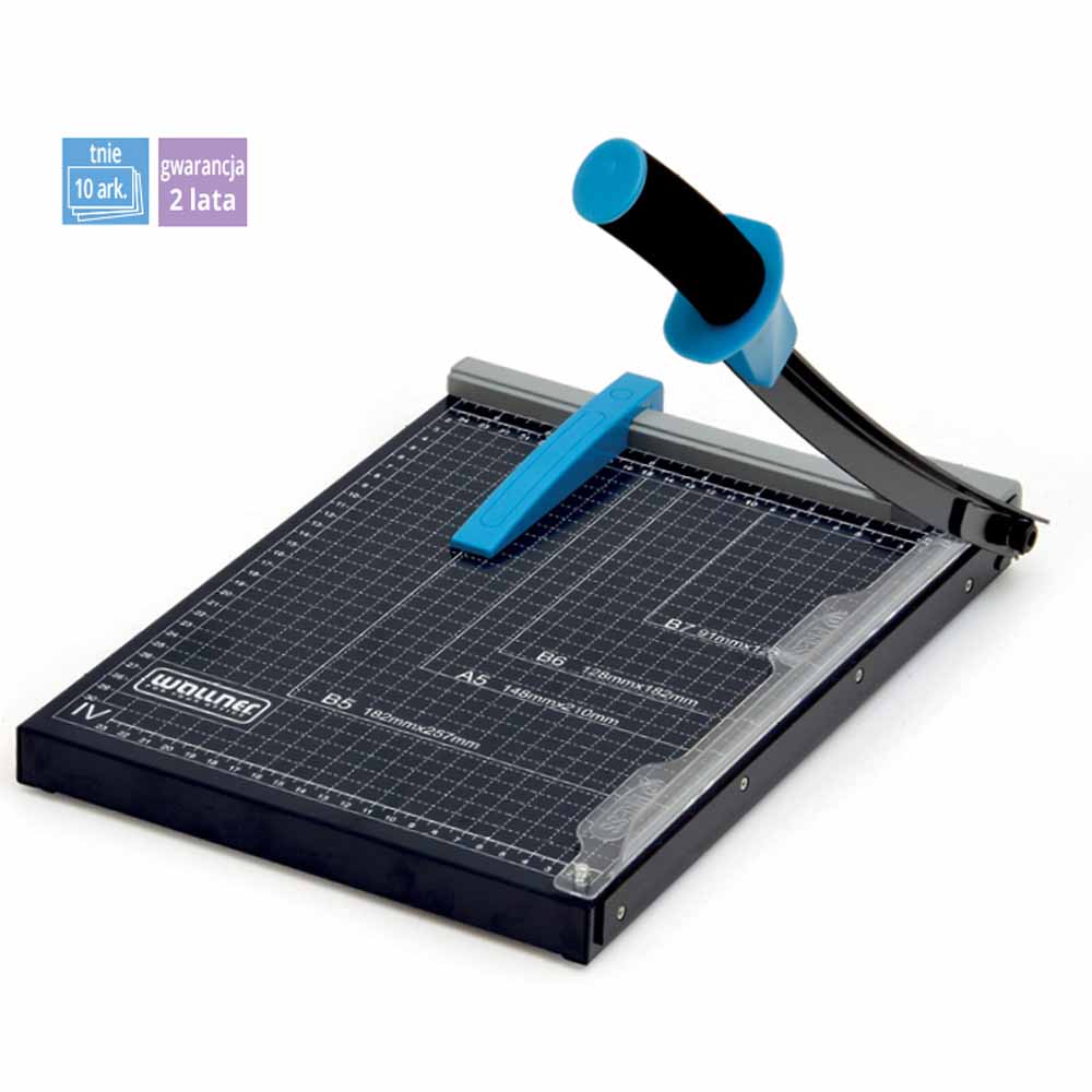 - posiada szablony (oznaczenie formatów) i podziałkę milimetrową, ułatwiające cięcie papieru
