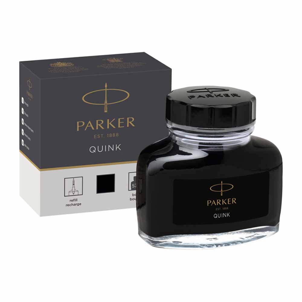 Atrament w butelce Parker Quink jest dostępny w praktycznym opakowaniu o pojemności 57 ml. Elegancka butelka nie tylko świetnie wygląda na biurku, ale także zapewnia wygodne napełnianie pióra. Dzięki dużej pojemności, atrament starczy na długi czas, co czyni go ekonomicznym wyborem dla każdego użytkownika pióra.