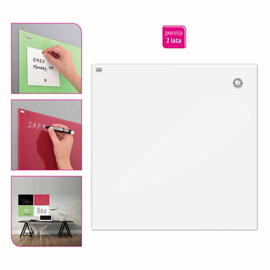 Tablica MemoBe Idea umożliwia montaż zarówno w pionie, jak i w poziomie, a załączone śruby i kołki rozporowe zapewniają szybkie i bezpieczne zawieszenie. Łączenie tablic w zestawy dzięki trzem dostępnym rozmiarom sprawia, że łatwo dopasujesz produkt do swoich potrzeb.