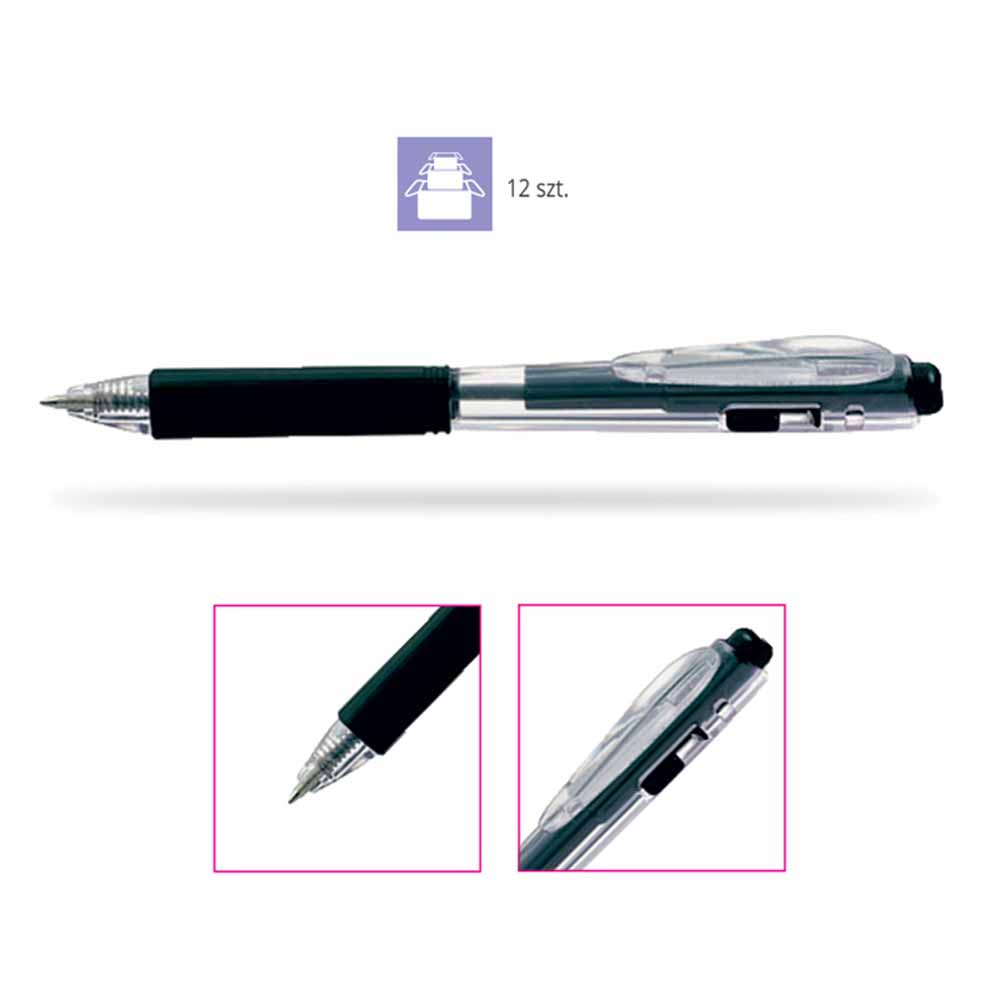 Długopis wyposażony jest w system przyciskowy, który umożliwia szybkie i łatwe wybieranie koloru tuszu. Metalowy klip dodaje elegancji i funkcjonalności, pozwalając na łatwe przypięcie długopisu do notesu, kieszeni lub teczki.