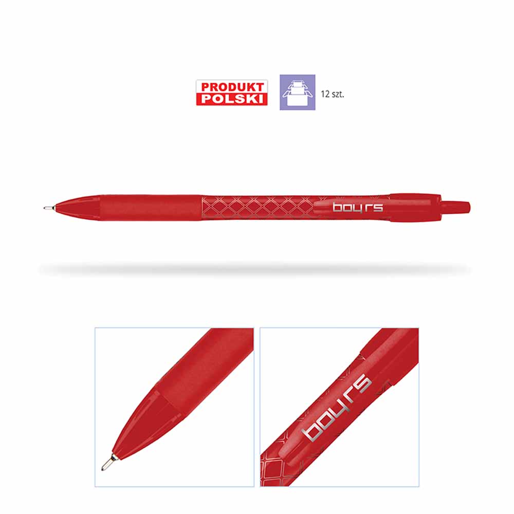 Uchwyt na korpusie długopisu posiada strukturę plastra miodu, co zapewnia pewny i wygodny chwyt. Ergonomiczny design minimalizuje zmęczenie dłoni, nawet podczas długotrwałego pisania.