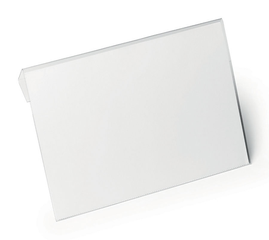 - kieszeń magazynowa wykonana z przezroczystej twardej folii PET z zakładką do zawieszenia na kartonach, pudełkach lub innych pojemnikach