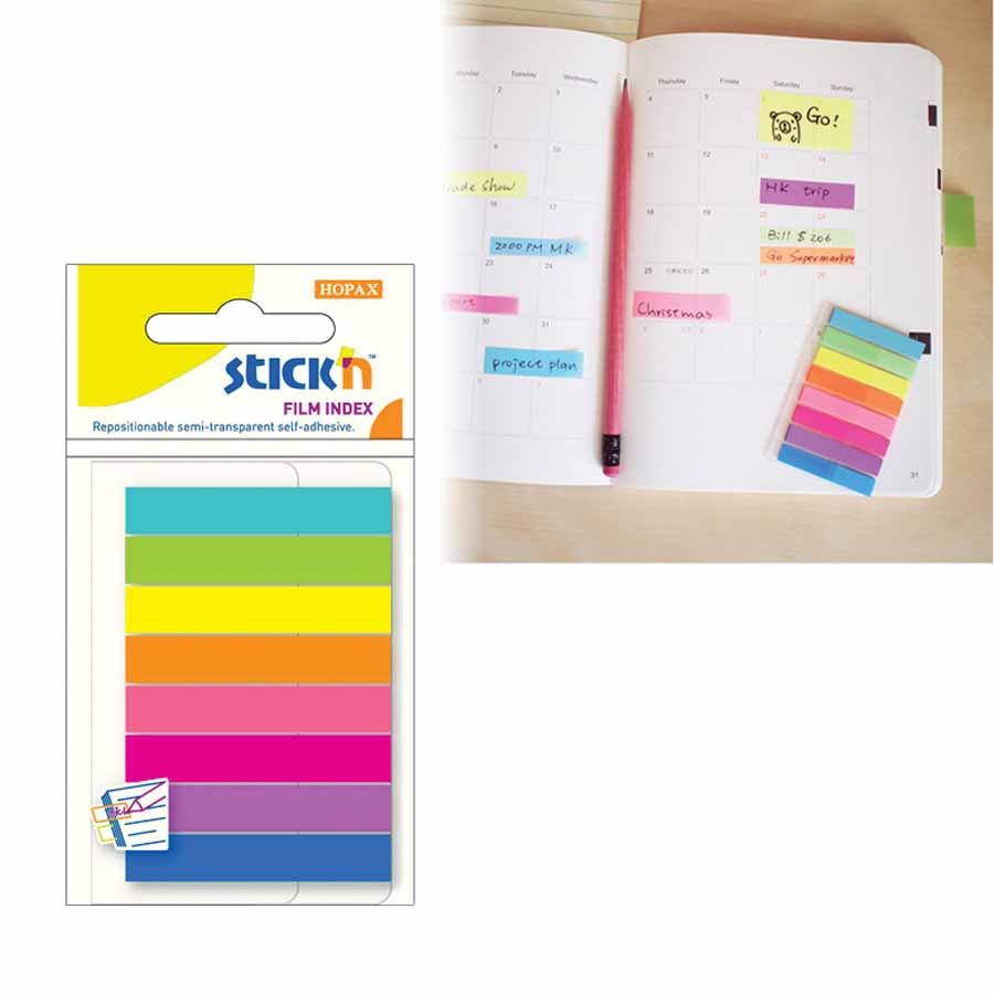 zakładki indeksujące, idealne do pozostawienia uwag, informacji w formie zakładki ilość zakładek: 5x25 w rozmiarze 12x45mm wykonane z folii PP o grubości 60μm wielorazowe z możliwością zapisu nowe, żywe, fluorescencyjne kolory przyciągają spojrzenie klej usuwalny za pomocą wody kształt: strzałka kolor: mix kolorów (neon)