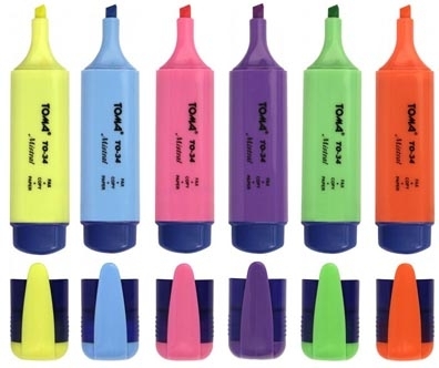 do znaczenia tekstu na wszystkich rodzajach papieru: faksowym, samokopiującym, w książce, na kserokopiach i wydrukach atramentowych/laserowych duża odporność na wysychanie nierozmazujący się tusz na bazie wody końcówka ścięta chroniona skuwką z klipsem w kolorze czarnym obudowa w kolorze tuszu nietoksyczny odporny na wysychanie pozostawiony bez skuwki nie wysychnie przez 4 godziny grubość linii pisania: 2-5mm długość linii pisania: 300m kolor: fioletowy