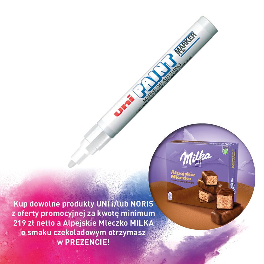 jm.: szt Kup dowolne produkty UNI i/lub NORIS z oferty promocyjnej za kwotę minimum 219 zł netto a Alpejskie Mleczko MILKA o smaku czekoladowym otrzymasz w PREZENCIE!
