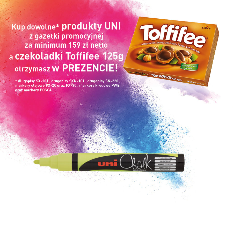 jm.: szt Kup dowolne produktu UNI z gazetki promocyjnej za minimum 159 zł netto a czekoladki Toffifee 125g otrzymasz w PREZENCIE !