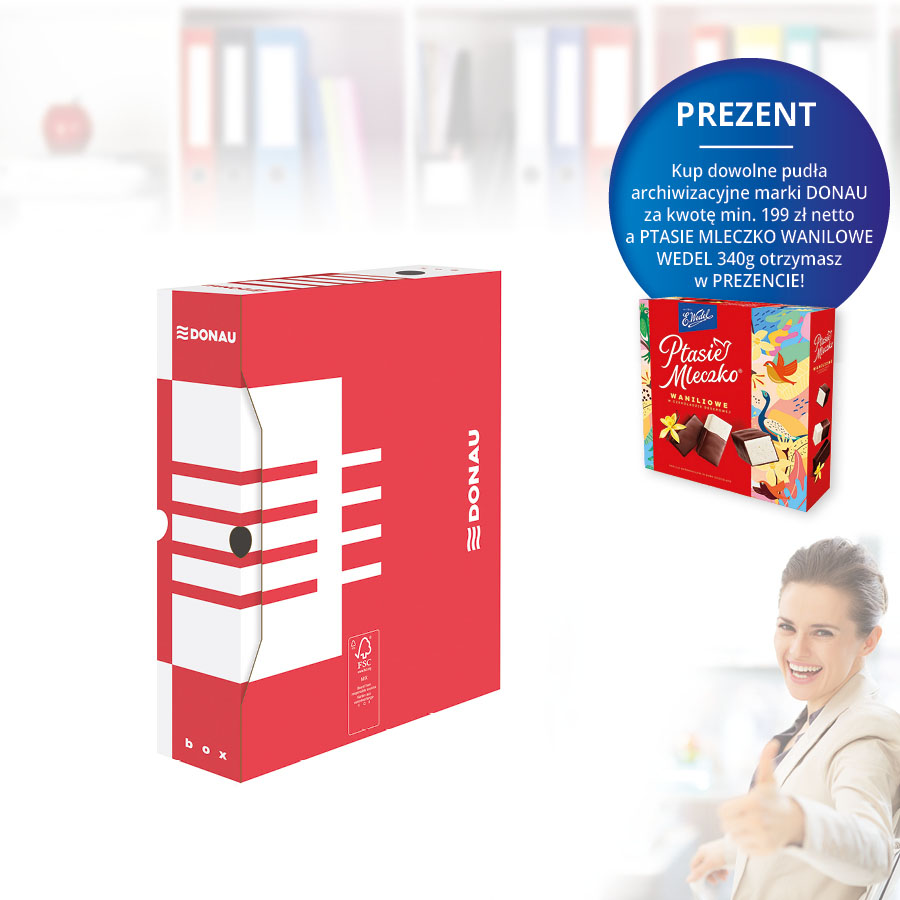 jm.: szt Kup dowolne pudła archiwizacyjne marki DONAU za kwotę min. 199 zł netto a PTASIE MLECZKO WANILOWE WEDEL 340g otrzymasz w PREZENCIE !