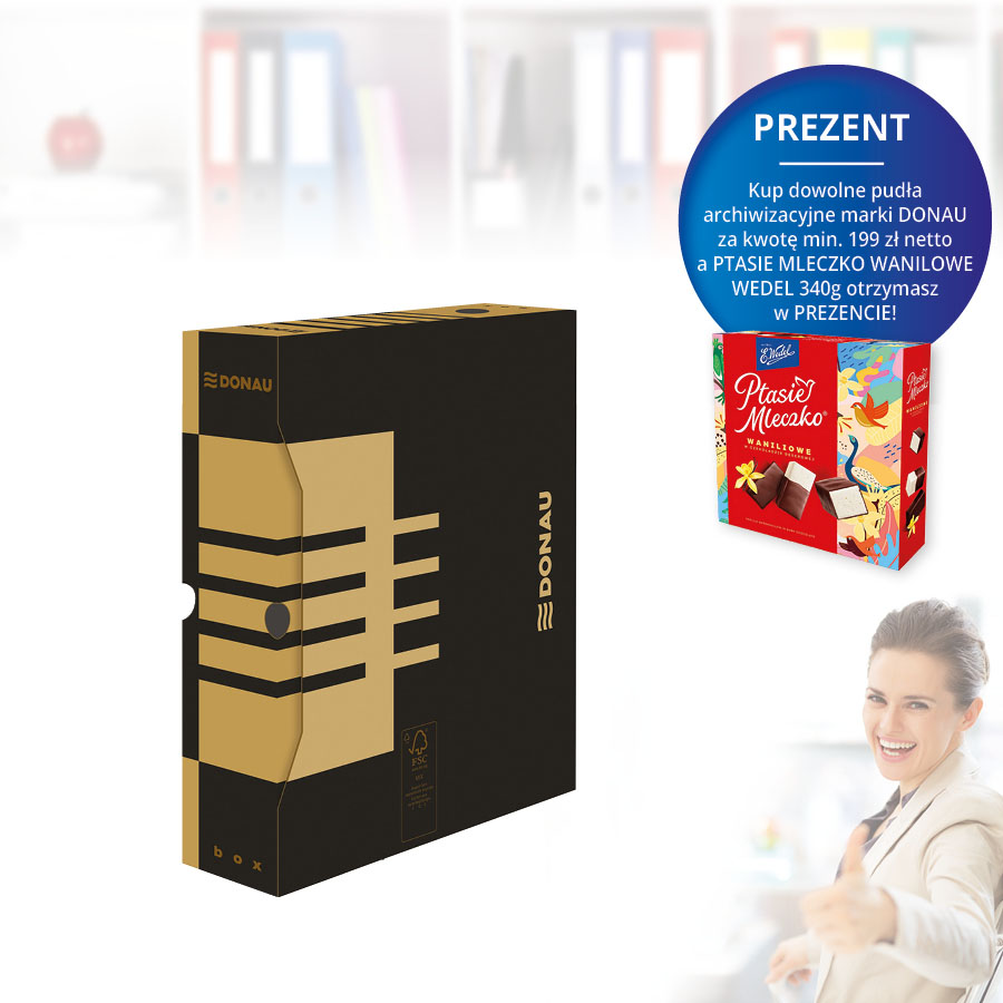 Pudło archiwizacyjne DONAU to doskonałe rozwiązanie do przechowywania dokumentów w formacie A4. Wykonane z trójwarstwowej tektury falistej o gramaturze 390 gsm, zapewnia wyjątkową trwałość i stabilność. Bezkwasowa formuła (pH powyżej 7,5) chroni dokumenty przed degradacją, co czyni to pudło idealnym do długotrwałej archiwizacji.