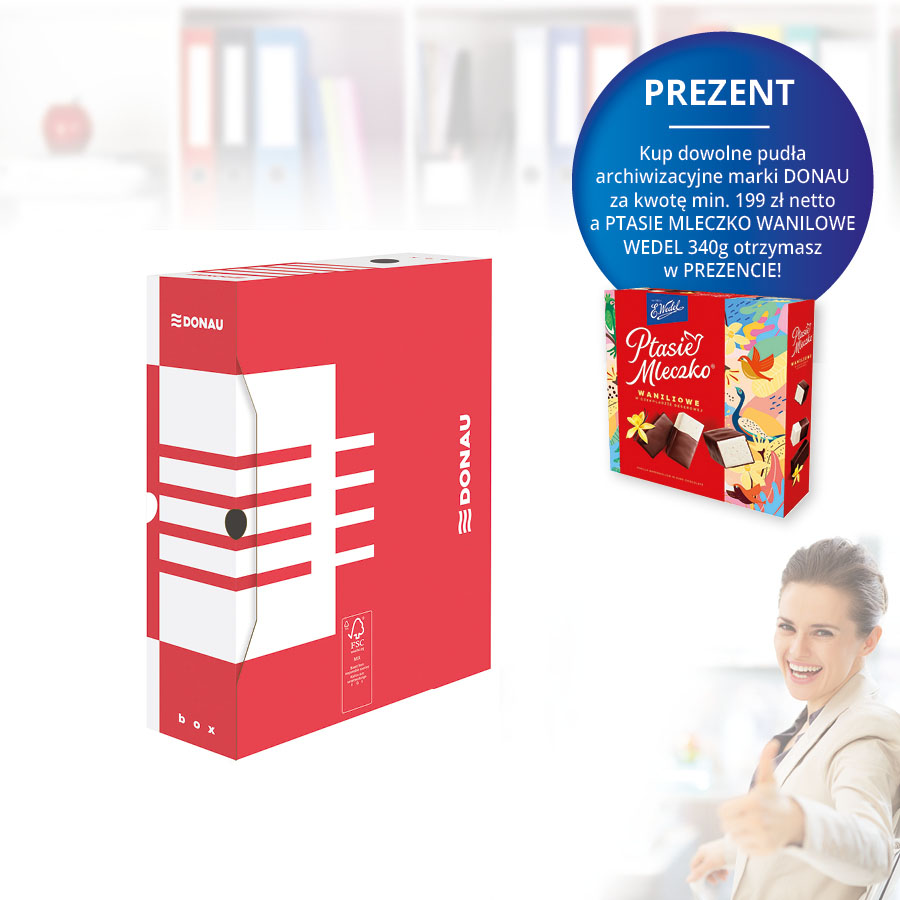 jm.: szt Kup dowolne pudła archiwizacyjne marki DONAU za kwotę min. 199 zł netto a PTASIE MLECZKO WANILOWE WEDEL 340g otrzymasz w PREZENCIE !