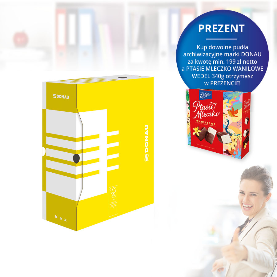jm.: szt Kup dowolne pudła archiwizacyjne marki DONAU za kwotę min. 199 zł netto a PTASIE MLECZKO WANILOWE WEDEL 340g otrzymasz w PREZENCIE !