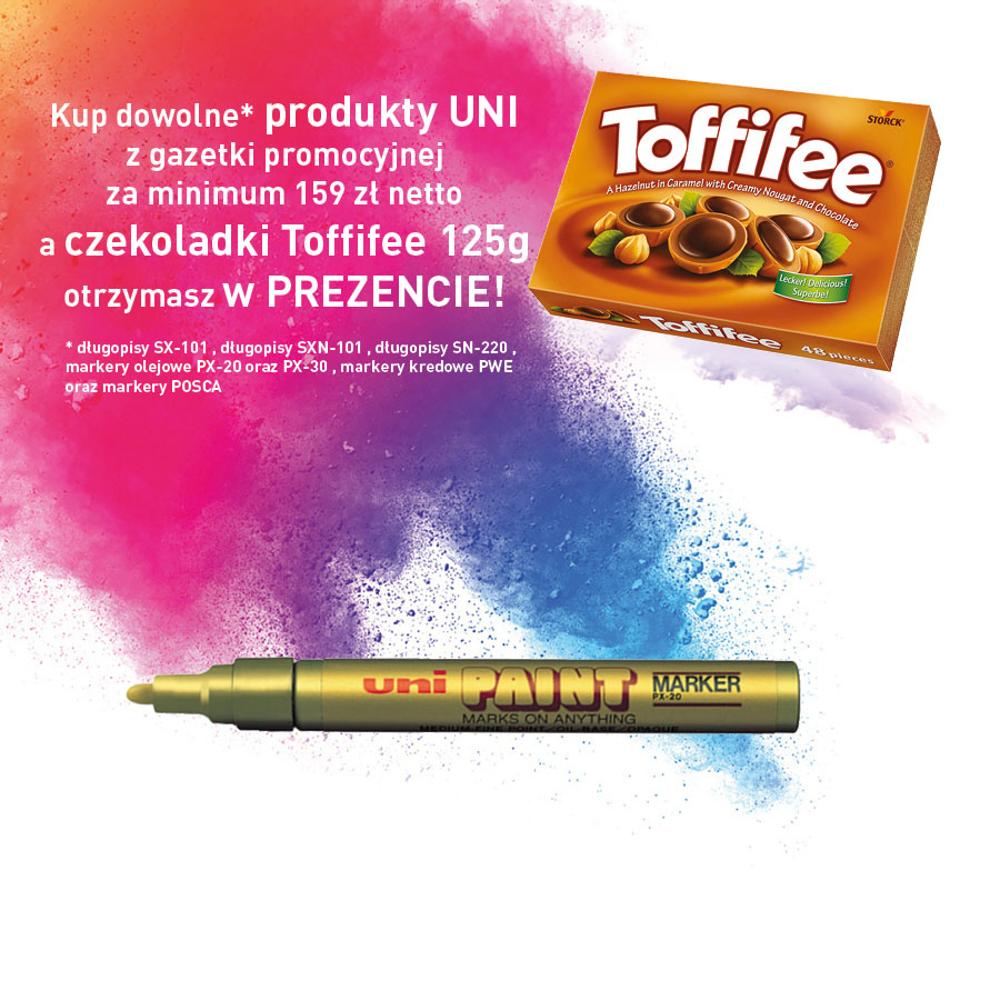 jm.: szt Kup dowolne produktu UNI z gazetki promocyjnej za minimum 159 zł netto a czekoladki Toffifee 125g otrzymasz w PREZENCIE !