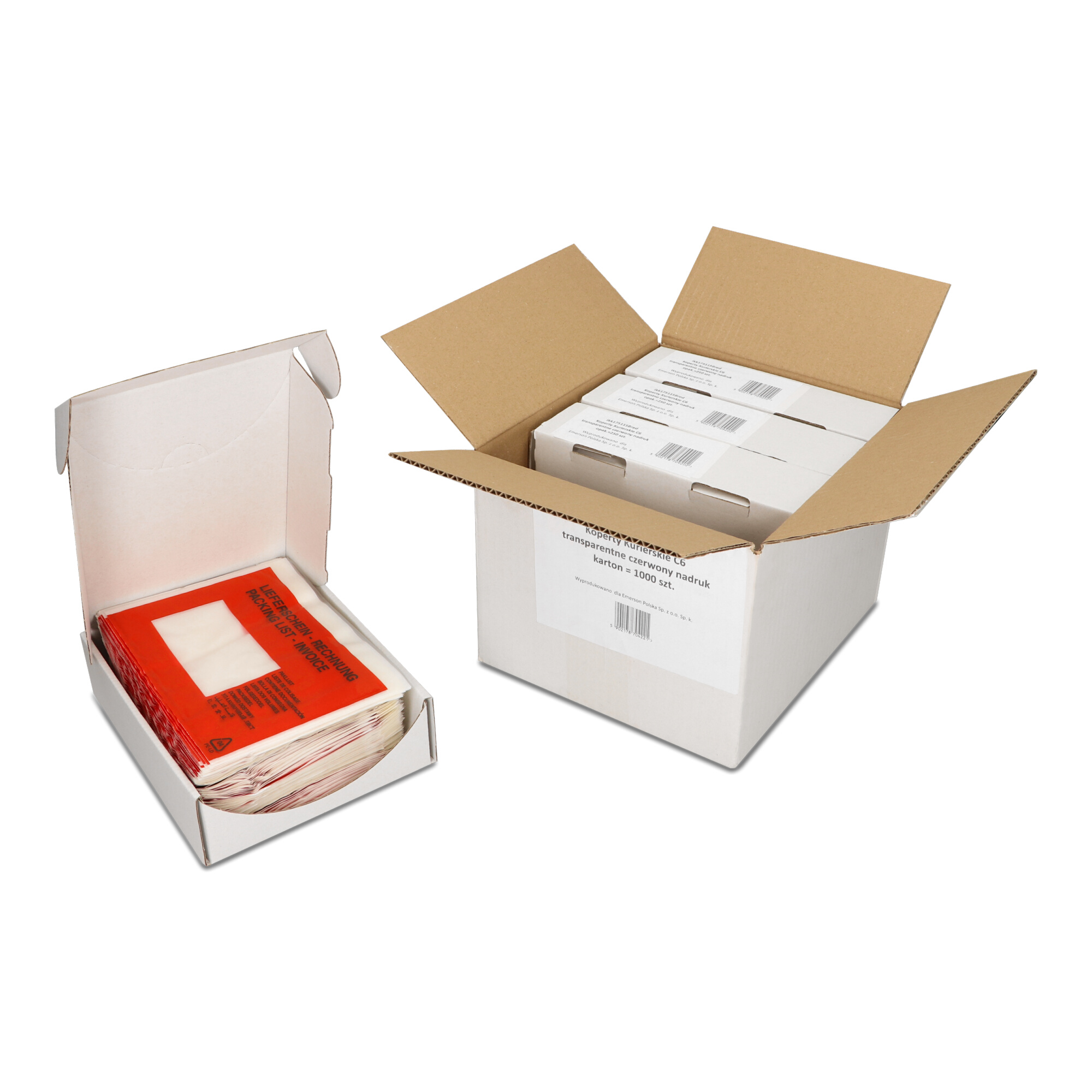 Koperty kurierskie Emerson czerwony nadruk