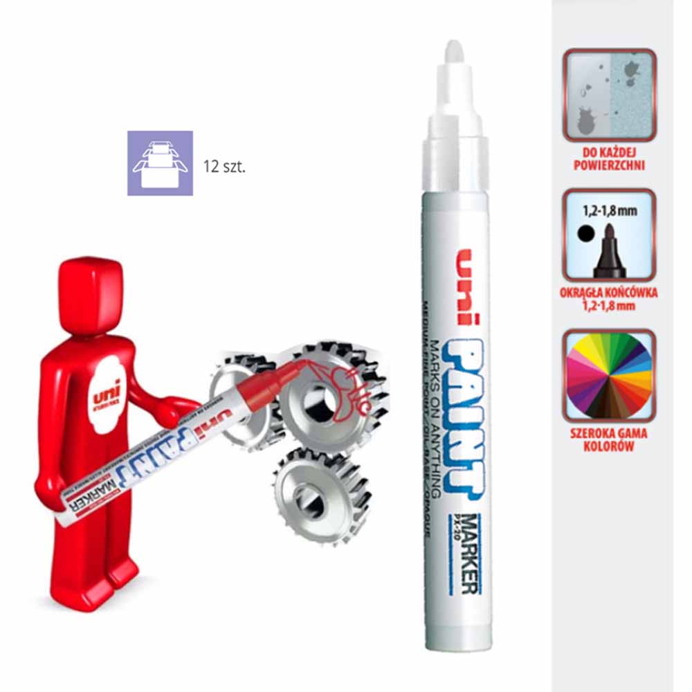 - trwały tusz o słabym zapachu i kryciu zbliżonym do lakieru jest wysoce odporny na ścieranie, działanie światła i temperatury (widoczny do 400 stopni C, kolory biały i żółty - nawet do 1000 stopni C)