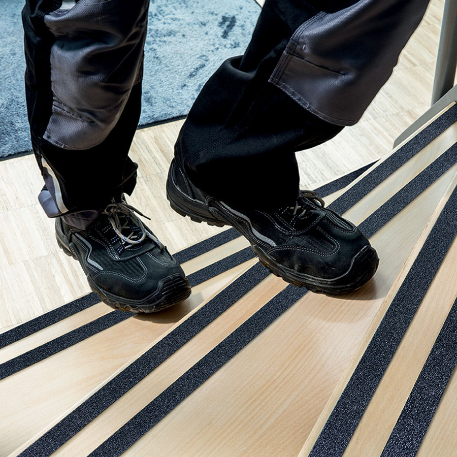 - standardowa antypoślizgowa taśma samoprzylepna do zwiększenia bezpieczeństwa traktów komunikacyjnych i powierzchni ruchu pieszego