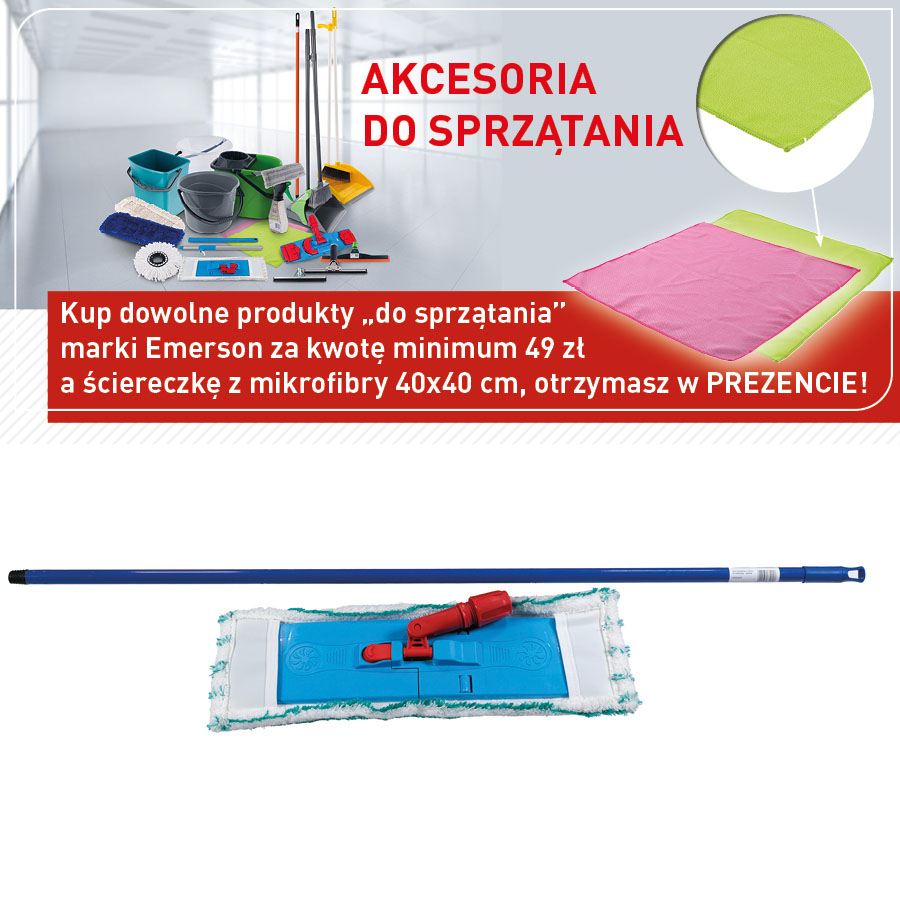 jm.: kpl Kup dowolne produkty do sprzątania marki Emerson za kwotę minimum 49 zł a ściereczkę z mikrofibry 40x40 cm, otrzymasz w PREZENCIE!