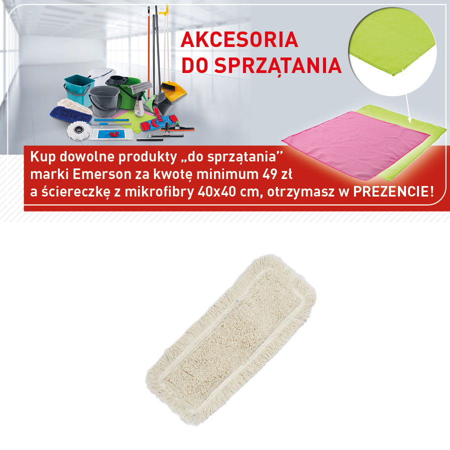 jm.: szt Kup dowolne produkty do sprzątania marki Emerson za kwotę minimum 49 zł a ściereczkę z mikrofibry 40x40 cm, otrzymasz w PREZENCIE!