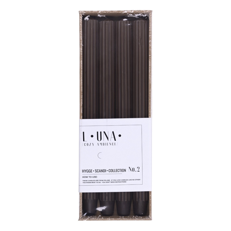 Świeca stołowa długa ryflowana DONAU HOME, 25x300 mm, 4 szt., brązowa