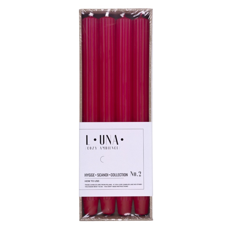 Świeca stołowa długa ryflowana DONAU HOME, 25x300 mm, 4 szt., czerwona